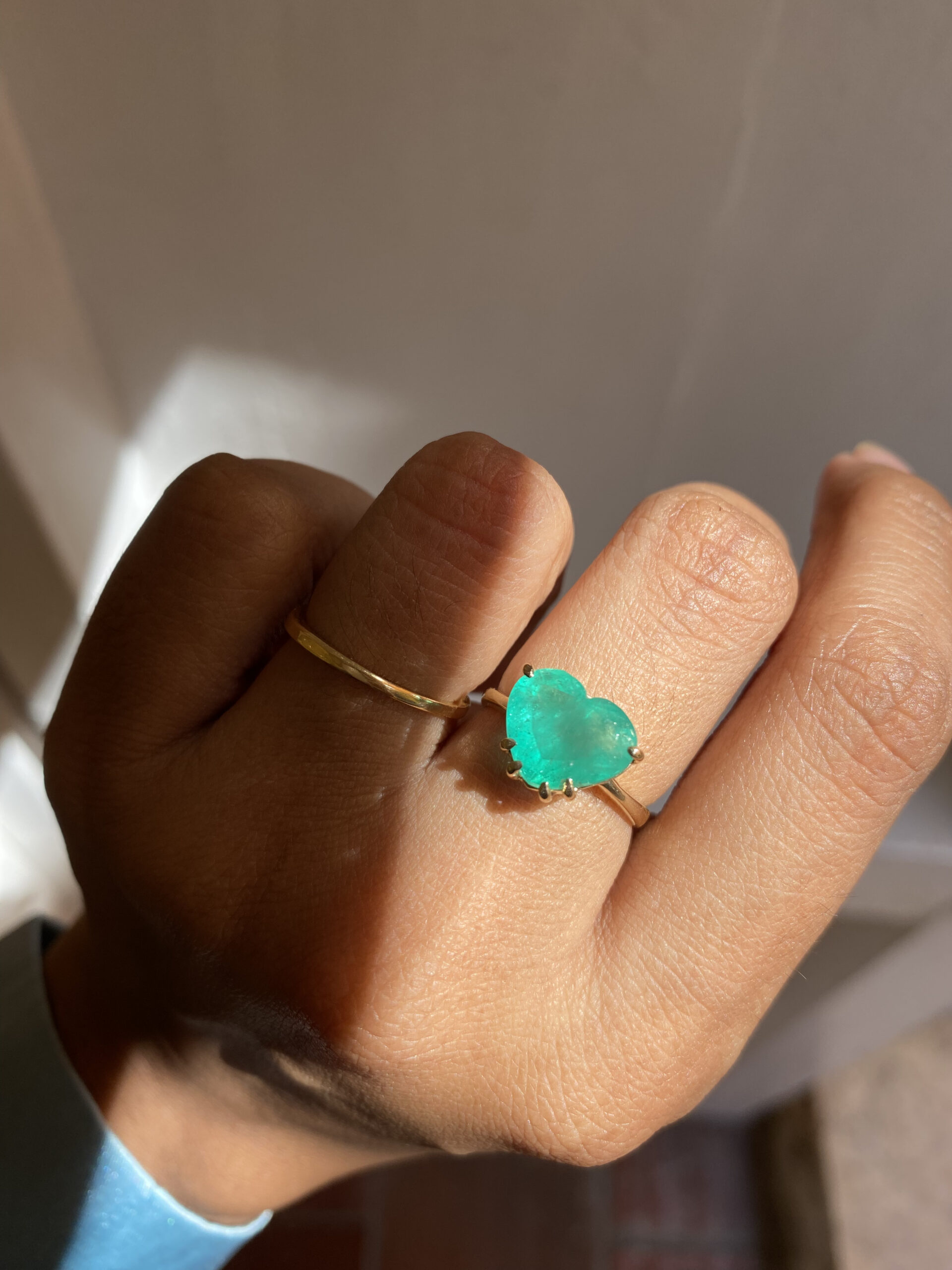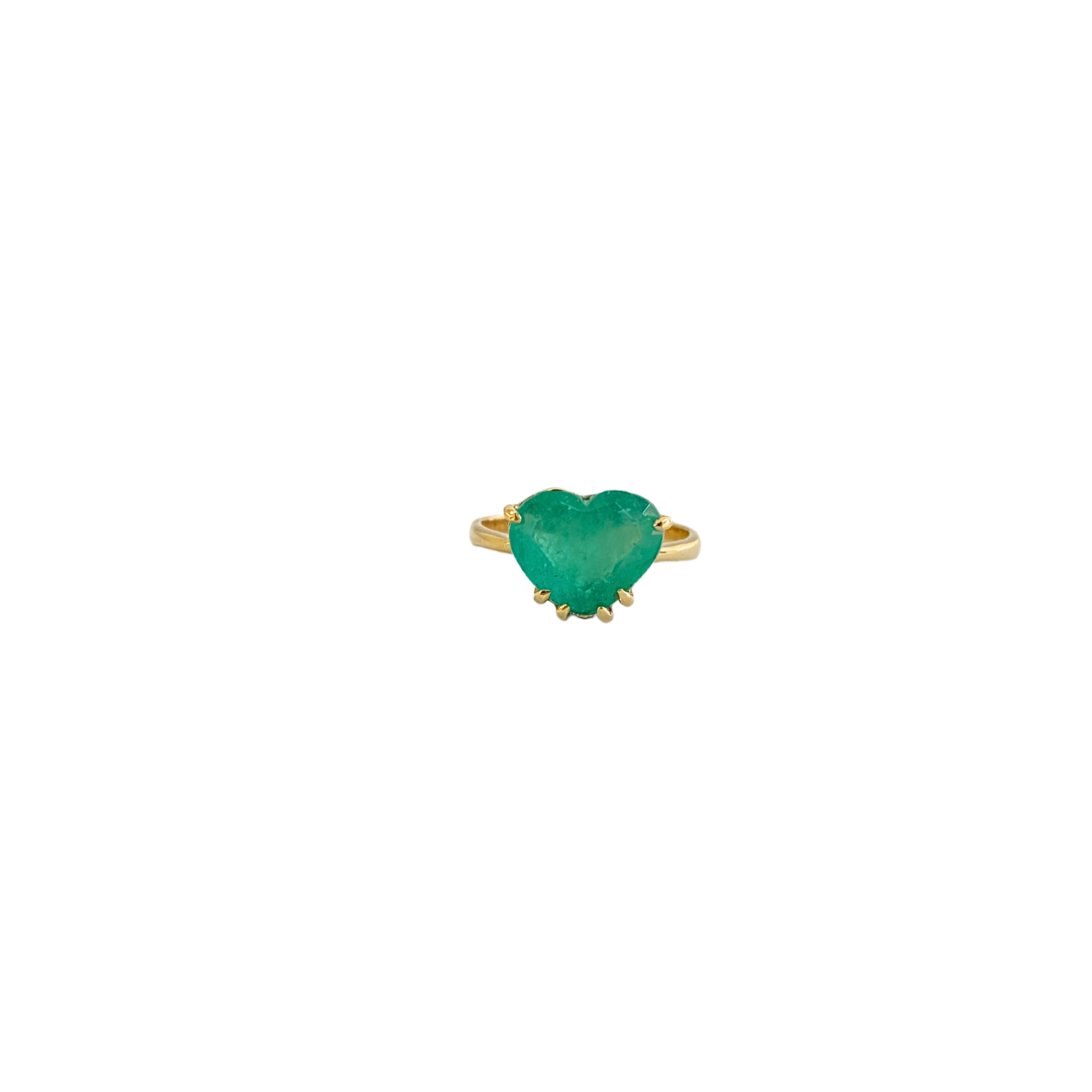 Ring crafted in solid 18k gold with a Colombian heart-cut emerald, approximately 3.2 Ct.