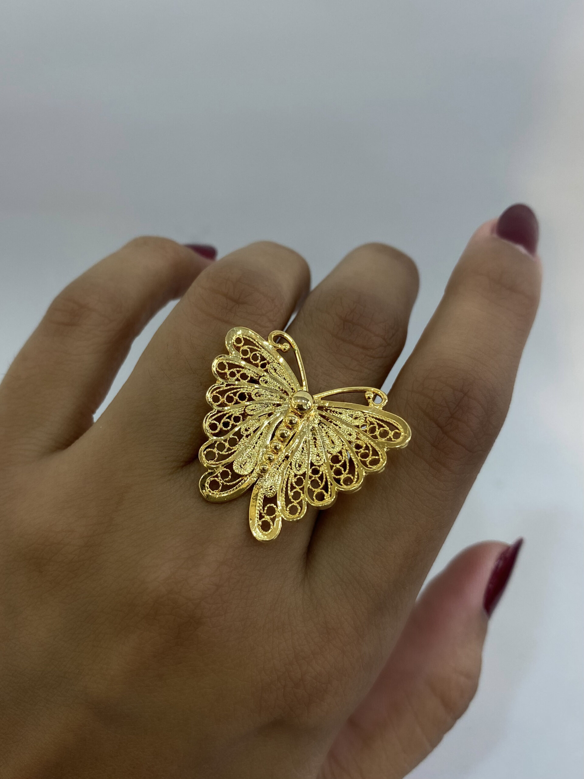 Filigree available only in silver and gold-plated finishes. (The gold finish is a 24k gold plating, but the base is always silver. If the customer prefers the piece in solid 18k gold, they can contact us for a personalized order.)