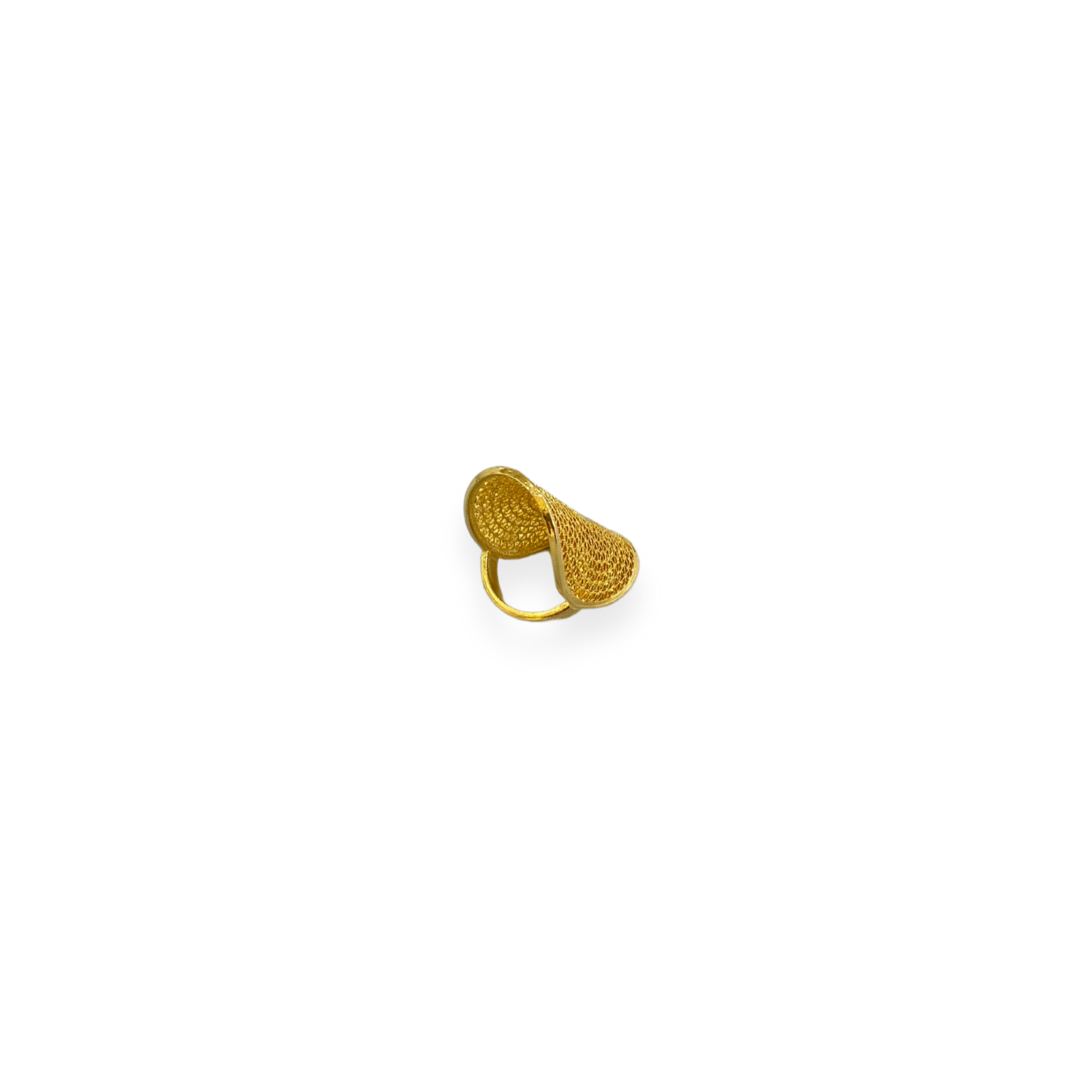 Handwoven ring using the filigree technique, crafted in 970 sterling silver with a 24k solid gold plating.